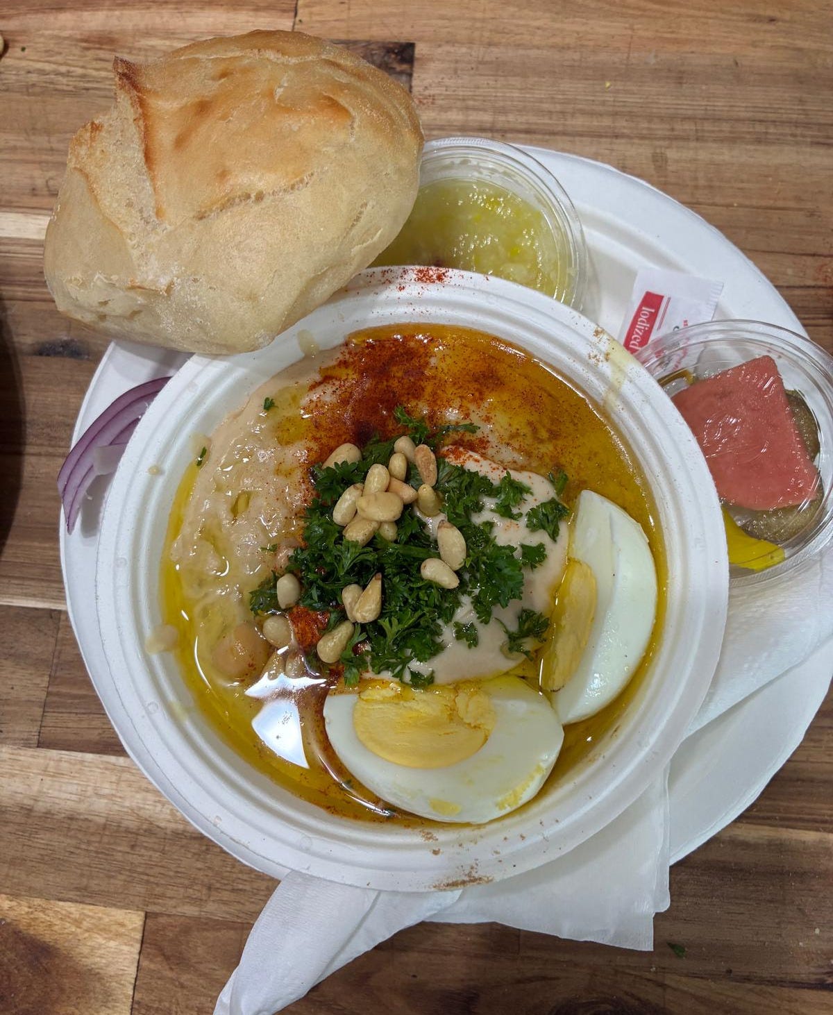 Aloha Bread Lovers – this Sunday we will be serving up Hummus Mashausha for our Sunday Special. For those don’t remember or don’t know what it is – mashausha is warm whole hummus (chick peas) mixed with tahini and served with a healthy dousing of olive oil, a tangy lemon-garlic sauce, a hard boiled egg and of course a freshly-baked pita to scoop it up. It is a super tasty and super healthy and nutritious dish